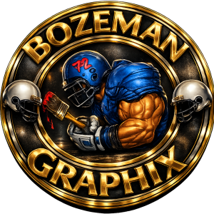 Bozeman Graphix, proudly Black-owned and operating since 2019, delivers high-quality graphic design and mass apparel production with a specialty in bulk T-shirt orders. We handle large-scale projects efficiently while maintaining premium results. For orders or inquiries, contact us today.